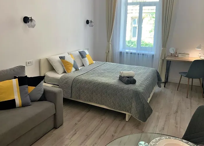 Den är placerad 550 meter från Volodymyr Ivasyuk Monument och ca 600 meter från Marknadstorget. Centrum är beläget ca 1 km från stället och Lviv Danylo Halytskyi internationella flygplats ligger 0,5 km bort. Olika matställen, inklusive 4friends Whiskey Pub och Hrushevs'kyy Cinema Jazz, kan nås inom 150 meter.